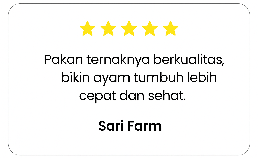 Membantu peternak meningkatkan produktivitas melalui produk unggulan, pelayanan ramah, dan pengiriman tepat waktu.