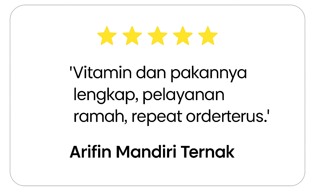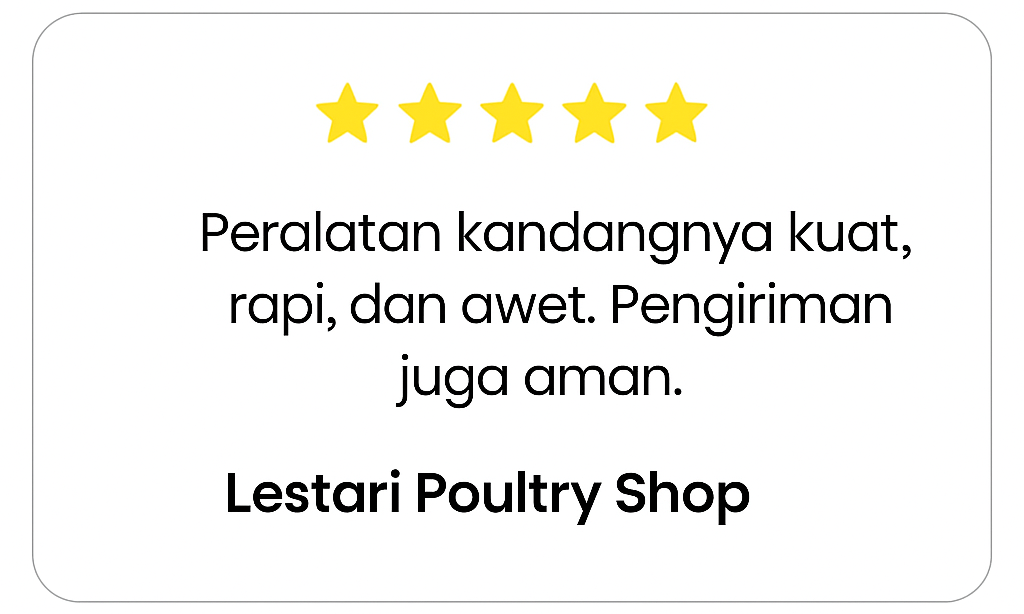 Selain itu, kami juga memberikan layanan konsultasi dan pengiriman cepat ke seluruh Indonesia, agar para peternak baik pemula maupun profesional bisa memulai usaha ternak dengan mudah, efisien, dan menguntungkan.